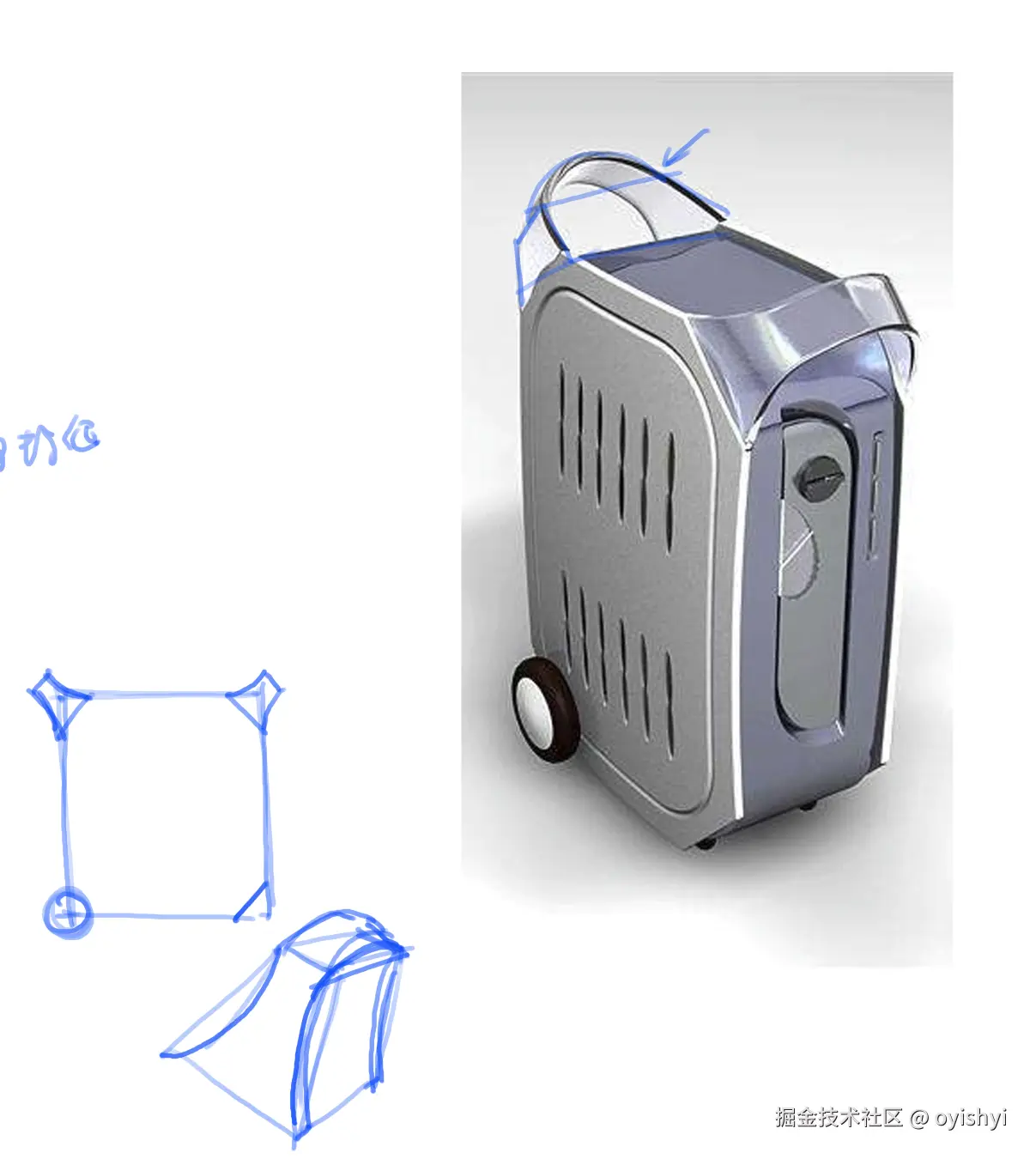 分析的时候,要多画立面图草图帮助分析。如下图,画完立面图其实就简单了。那两个把手无非就是方体+柱体。