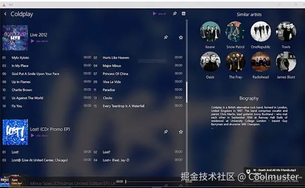 VLC for iOS是一款免费的 iPhone 音乐管理器,它不仅可以播放音乐,还可以播放其他媒体文件,例如各种格式的电影和节目。此外,你还可以使用它通过 Wi-Fi 将媒体同步到你的设备。
