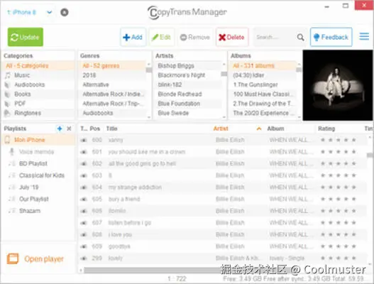 CopyTrans Manager是一款免费的 iPhone 音乐管理器,可帮助您高效地将音乐从电脑传输到 iPhone,无需 iTunes。这款轻量级程序也支持 iPad 和 iPod。