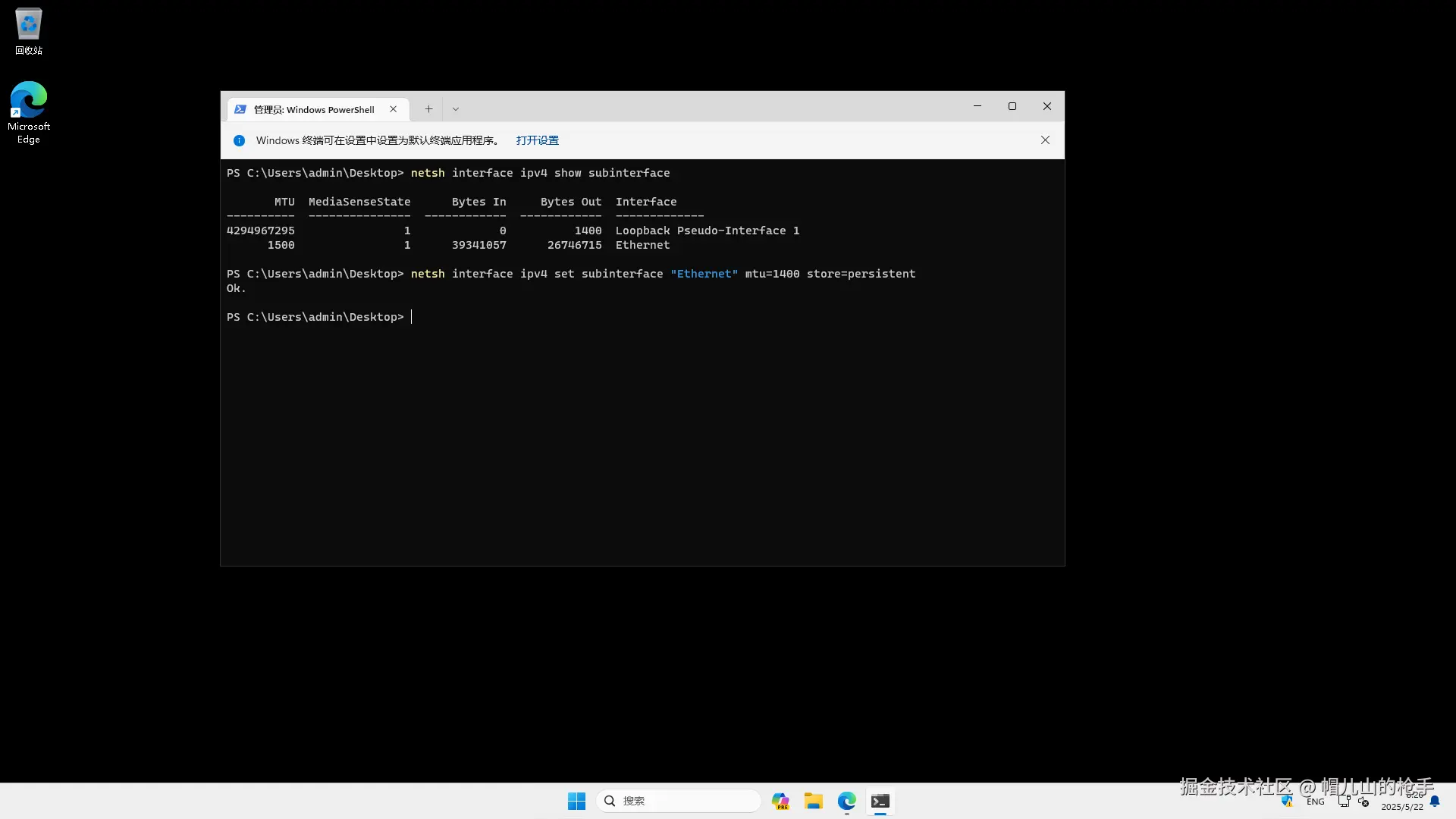 查看windows客户端网卡MTU是1500字节, 这与抓包看到TCP握手协商值符合预期。