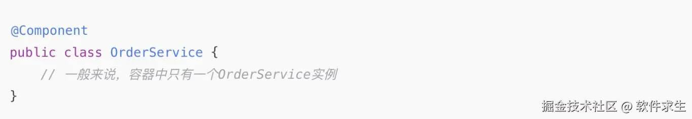 就是说,Spring容器中,每个Bean默认只会创建一个实例,而这个实例在容器中是共享的。每次你通过 @Autowired 或 ApplicationContext.getBean() 拿到的,都是这个唯一的实例。