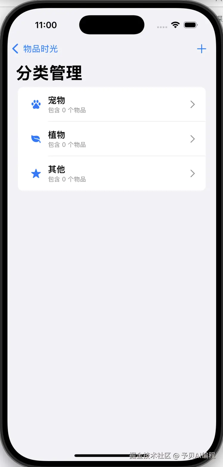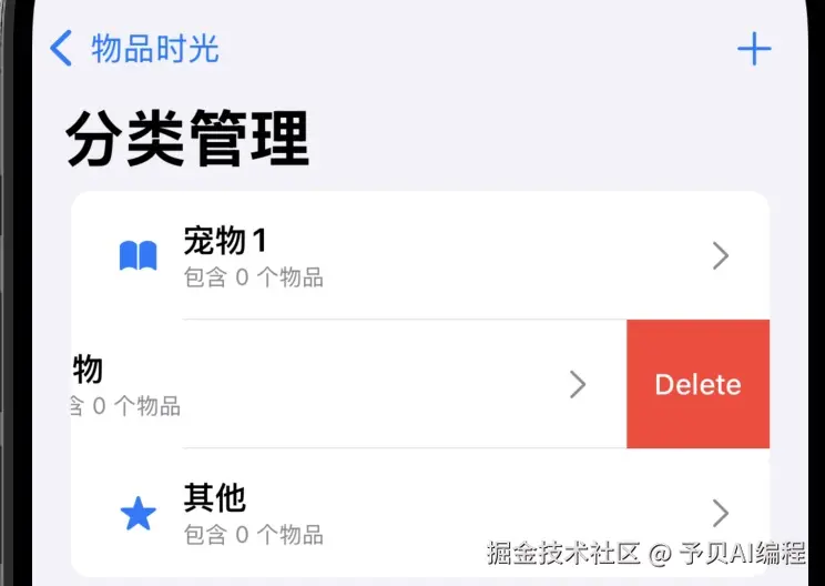 我想开发一个iOS app,希望能够对生活中的物品进行分类管理,并记录陪伴时间