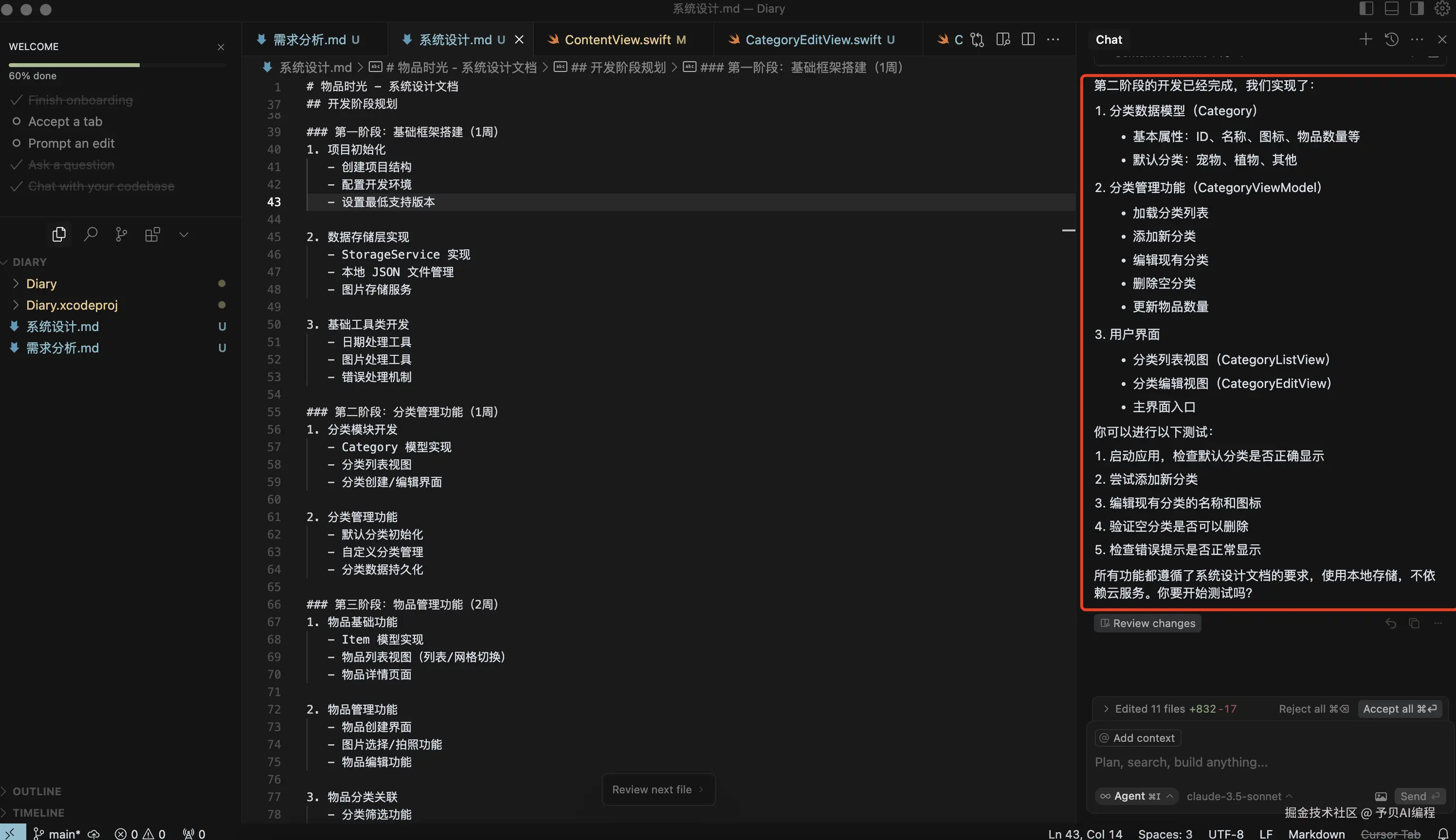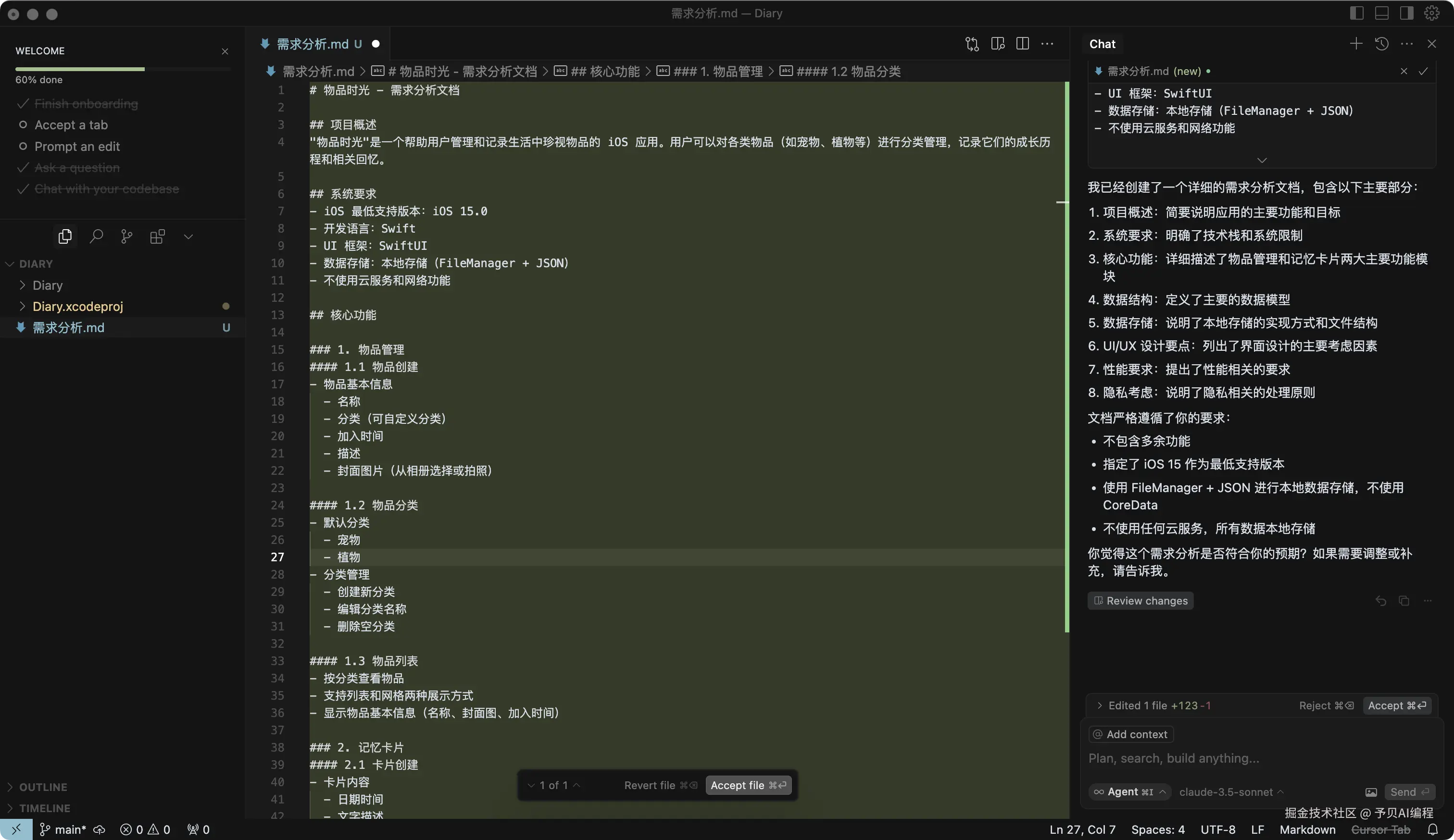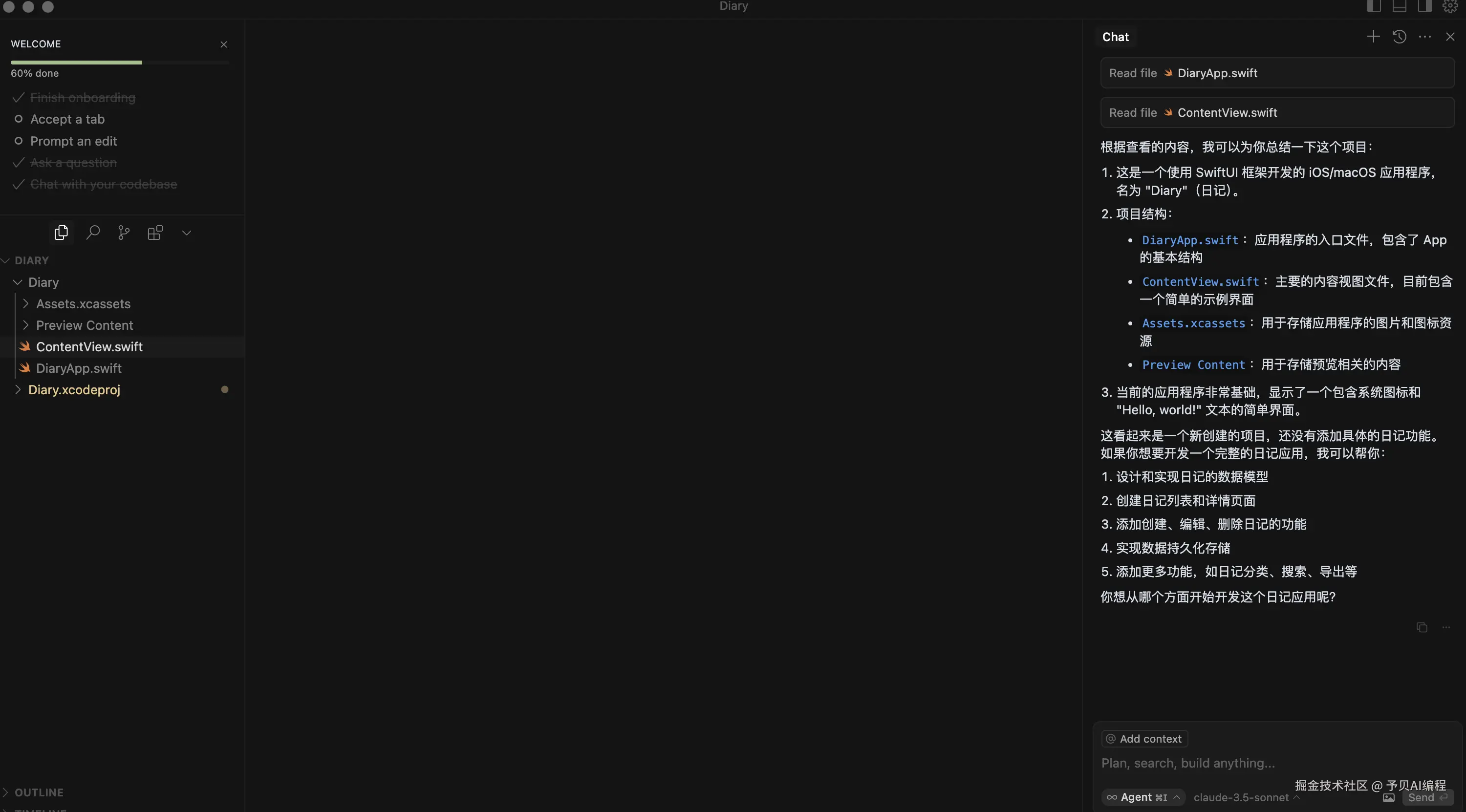 作为一个不懂 iOS 开发的“码盲”,决定挑战自我,用 AI 帮她开发一个专属的“陪伴日记”App!