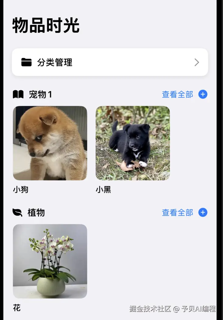 物品管理:创建和分类珍视的物品(宠物,植物等),添加详细信息和封面图片