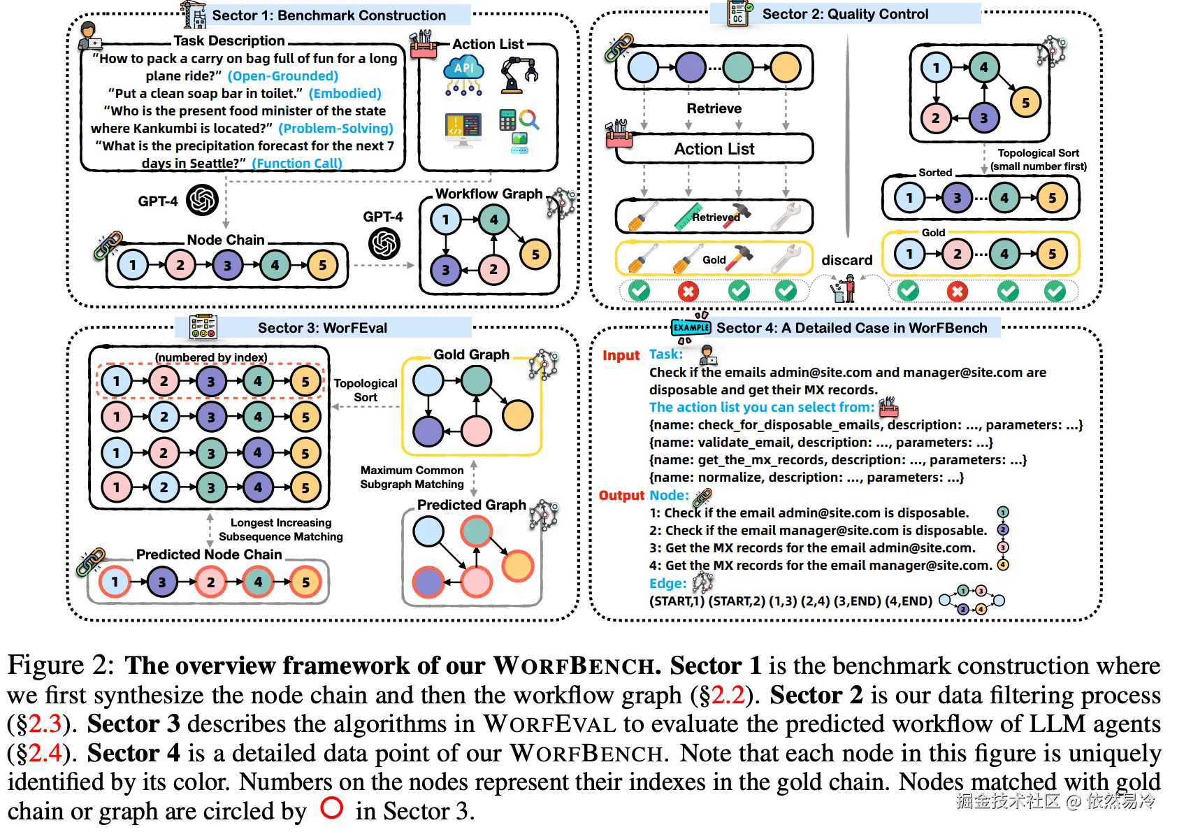 顾名思义,WorfBench就是评价LLM As Agent时,生成结构化Workflow工作流的能力,类似是评估LLM的Planning 的能力,能为模型选型提供好的建议,但用来评估完整的Agent能力,显得不够。