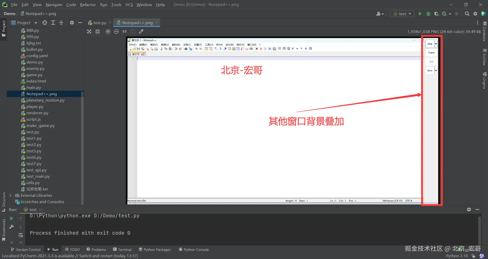 3.查看窗口截图,我们可以发现:截图会有其它窗口的背景会叠加,如下图所示: