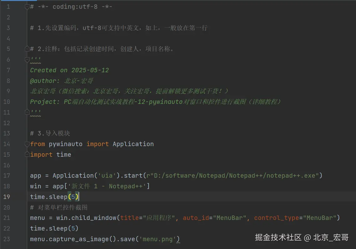 在宏哥之前的web端或者手机端做自动化过程中时经常会遇到一些截图操作,那么在做PC端的时候,是不是也会有截图操作,那么在PC端pywinauto应该怎么进行截图呢?宏哥今天就来将这个PC端截图的知识点讲解和分享一下。