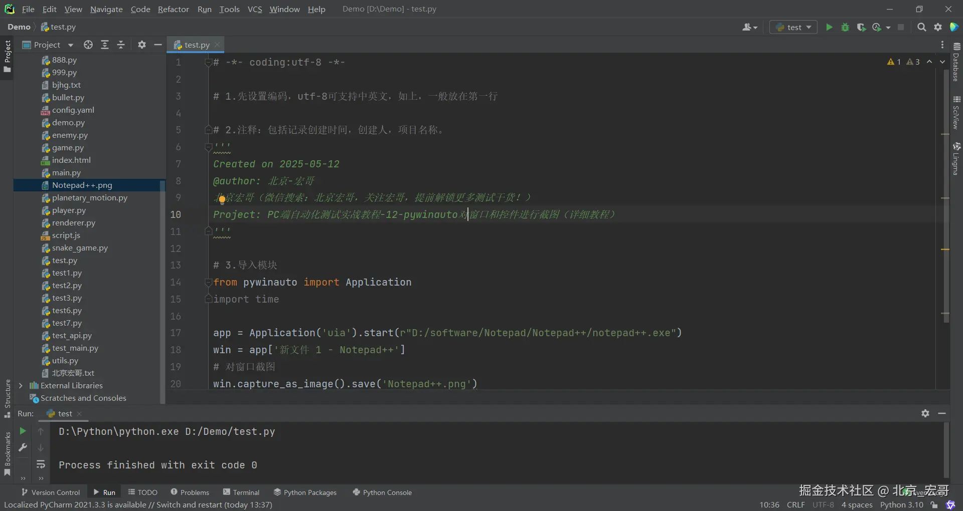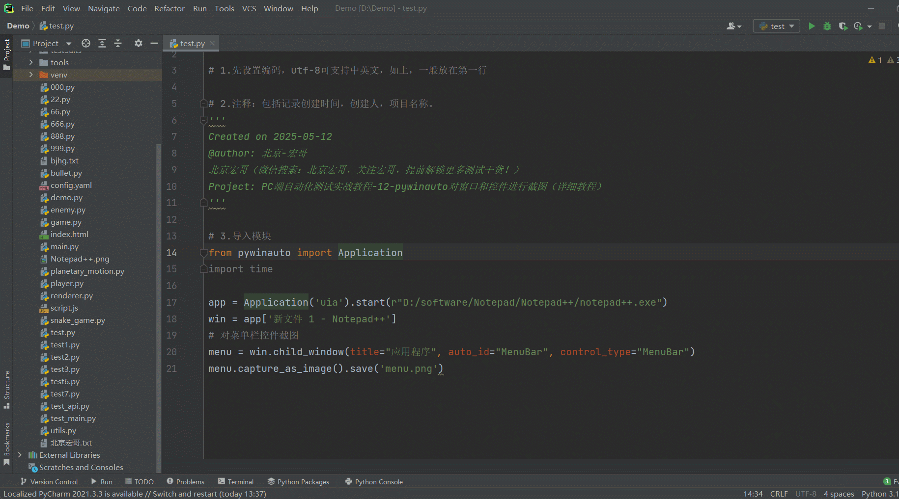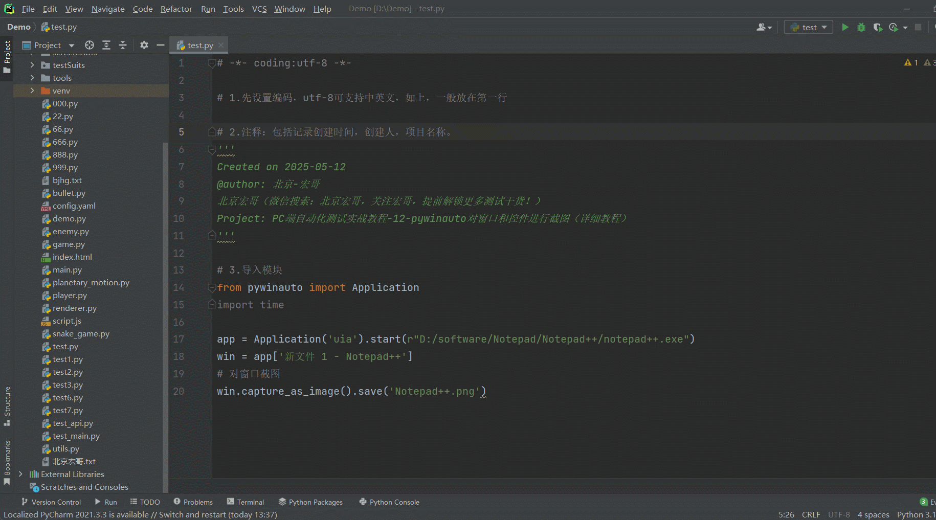 Project: PC端自动化测试实战教程-12-pywinauto对窗口和控件进行截图(详细教程)