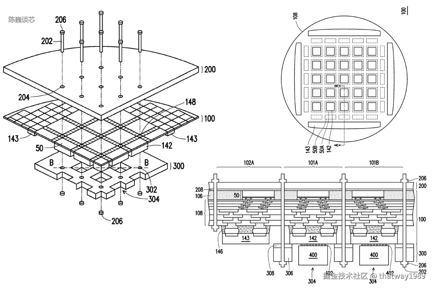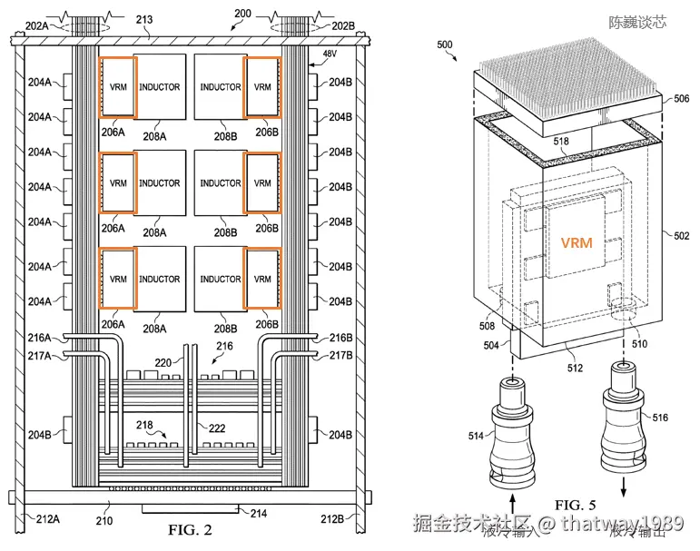 根据特斯拉的专利,我们可以看到电源调节模块与芯片本身垂直,极大的减少了对处理器平面的面积占用,且可以通过液冷来迅速平衡处理器的温度。