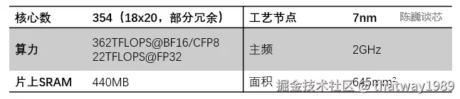 - 每个节点 1.25MB SRAM,将内存与计算 共置,以最大限度地减少数据传输(Me mory Bound)。