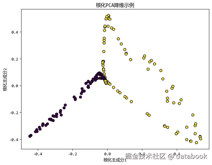 核化线性降维的核心是核函数。核函数可以将数据映射到一个高维空间,使得原本线性不可分的数据在这个空间中变得线性可分。