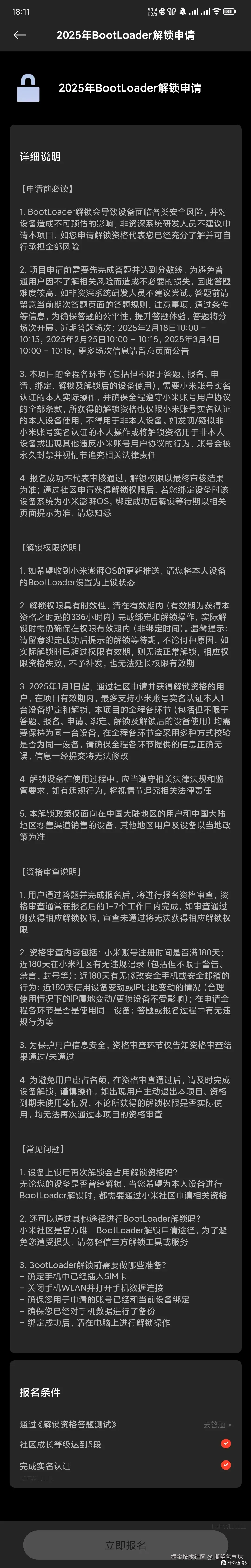 - 小米公司近年来对设备解锁的限制不断升级: