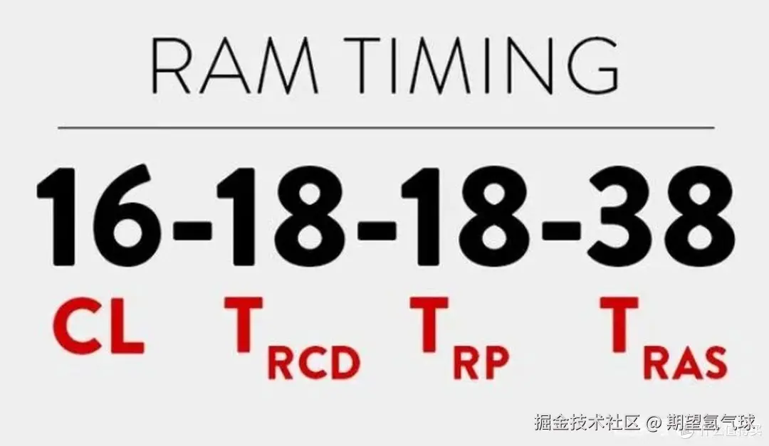 内存时序通常表示为几个数字的组合,如"CL16-18-18-36"。这组数字代表内存执行不同操作所需的时钟周期数。时序越低,内存的响应速度越快,延迟越低。从左到右依次为: