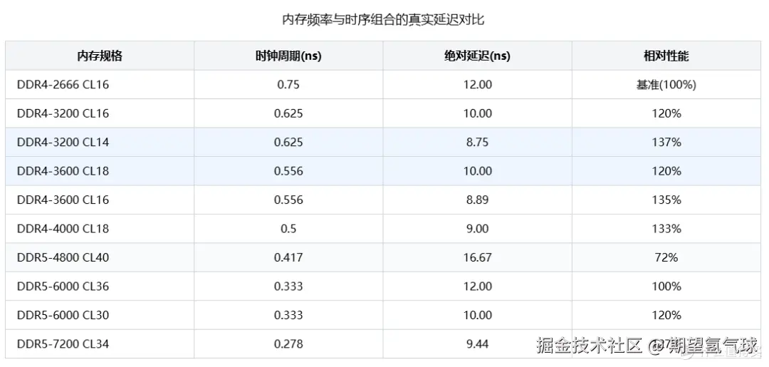 真实延迟(ns) = (CL值 × 2000) ÷ 内存频率(MHz)