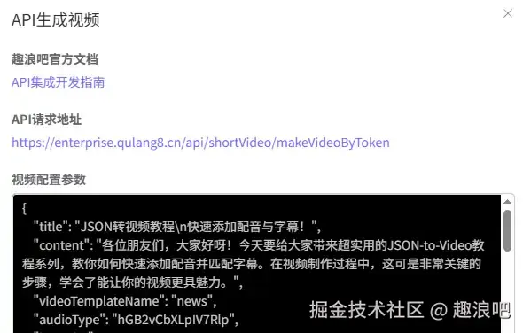 最后拼接您的视频制作的API-Token,发起调用,即可制作短视频啦~