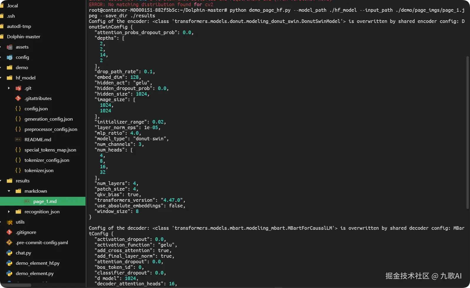 1.根据Dolphin项目requirements.txt要求,准备安装环境,安装torch2.1.0版本环境。我这里准备了一个干净的docker容器。