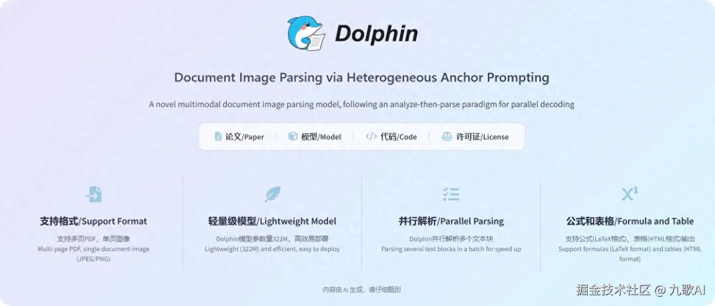 最近字节跳动开源了一款创新多模态文档图像解析模型——Dolphin,基于先解析结构后解析内容的两阶段方法,参数只有322M,16G显存就能流畅运行,而且效果比不输GPT-4.1!