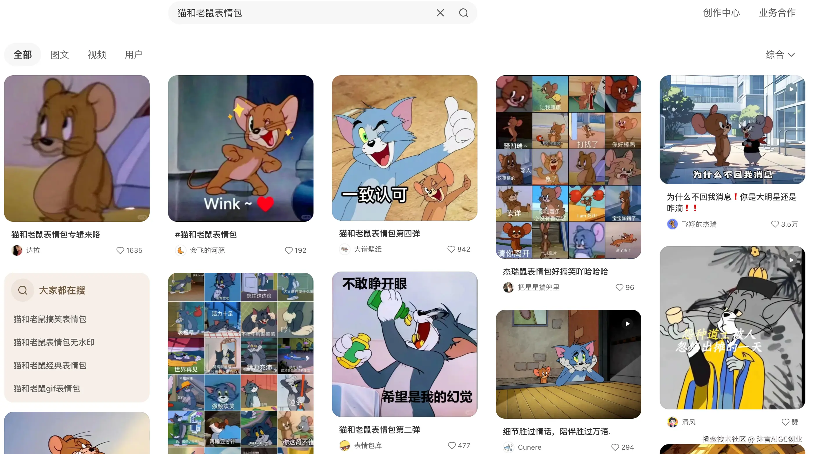 以上面小红书搜索的“猫和老鼠表情包”为例