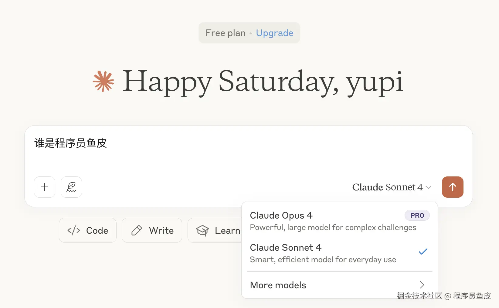 Claude 的使用非常简单,直接进入官网(claude.ai)就可以免费使用 Claude Sonnet 4 模型了: