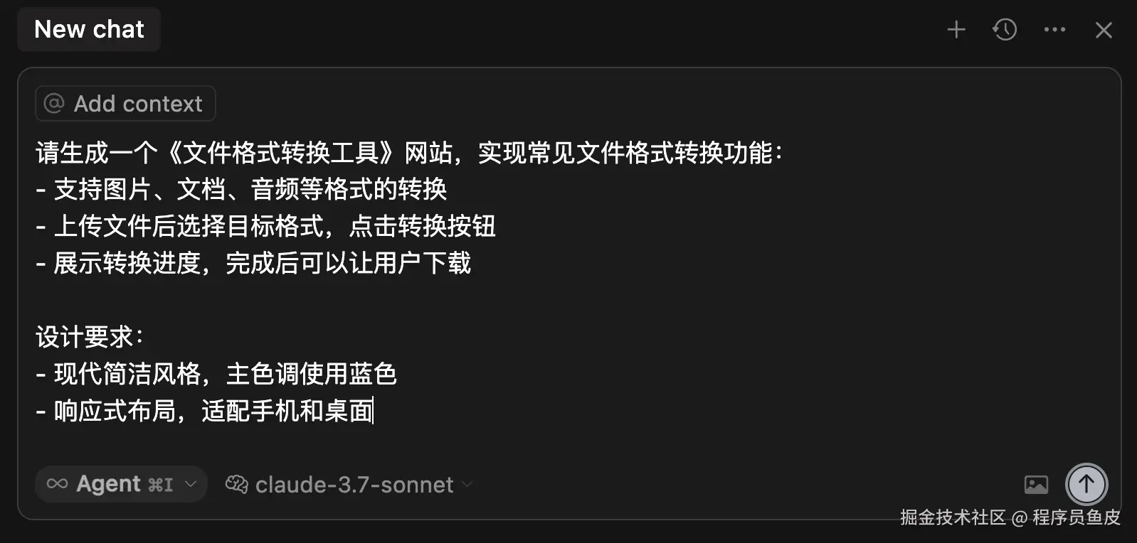 我们再来一个企业开发的需求,帮鱼皮自己的公司做个官方网站。准备一段 Prompt,交给 Cursor 去执行: