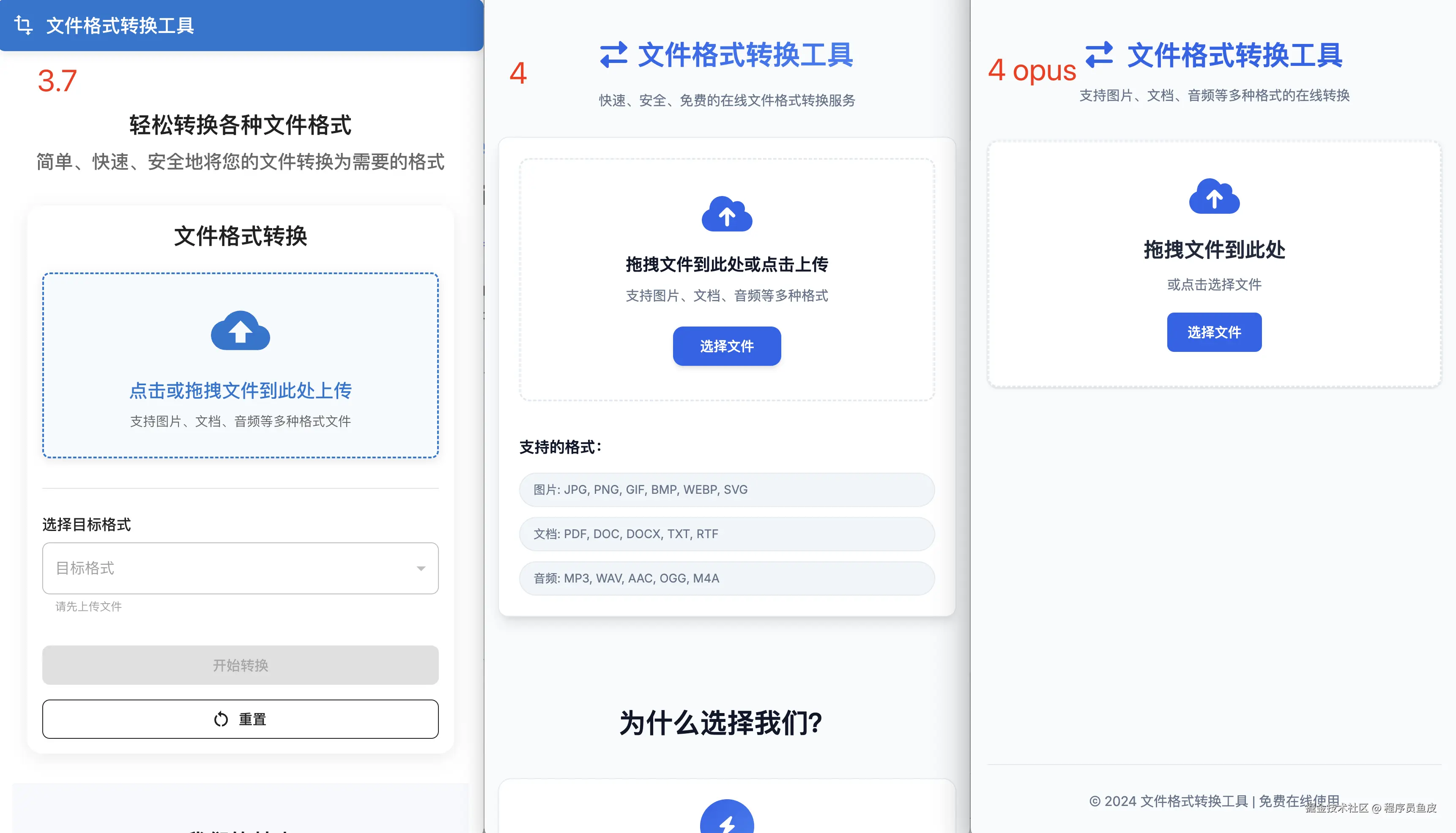 每个模型生成的网站都很简洁,效果还不错。但我会更喜欢 claude-4-sonnet,因为它给出了更多的引导信息,比如支持的转换格式等。