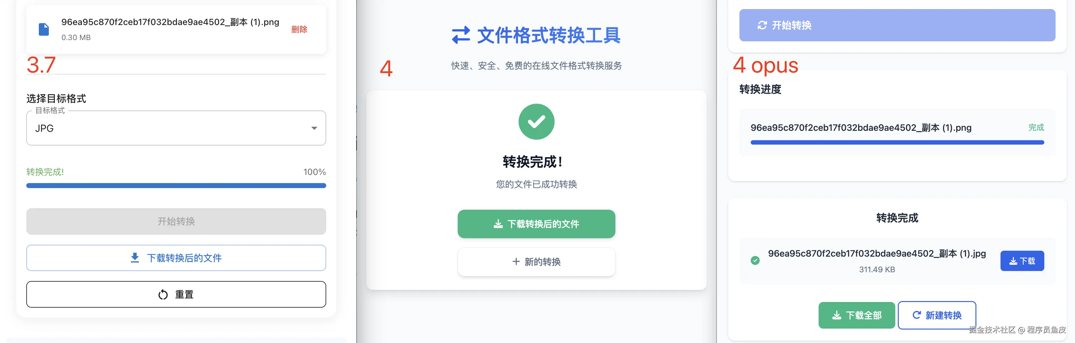 转换成功后,显然 claude-4-sonnet 和 claude-4-opus 的成功提示和下载按钮更明显,高下立判!