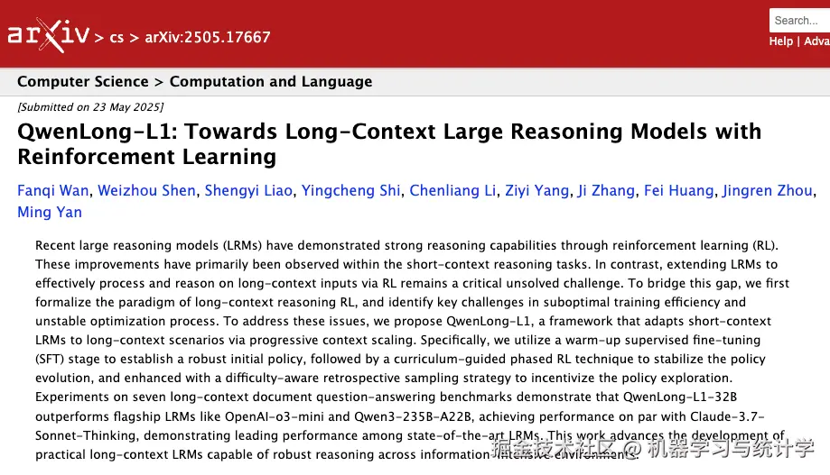 阿里又开源新模型了,这次是通义千问文档团队带来的 QwenLong-L1-32B——首个通过强化学习训练、专为长上下文推理设计的大语言模型。