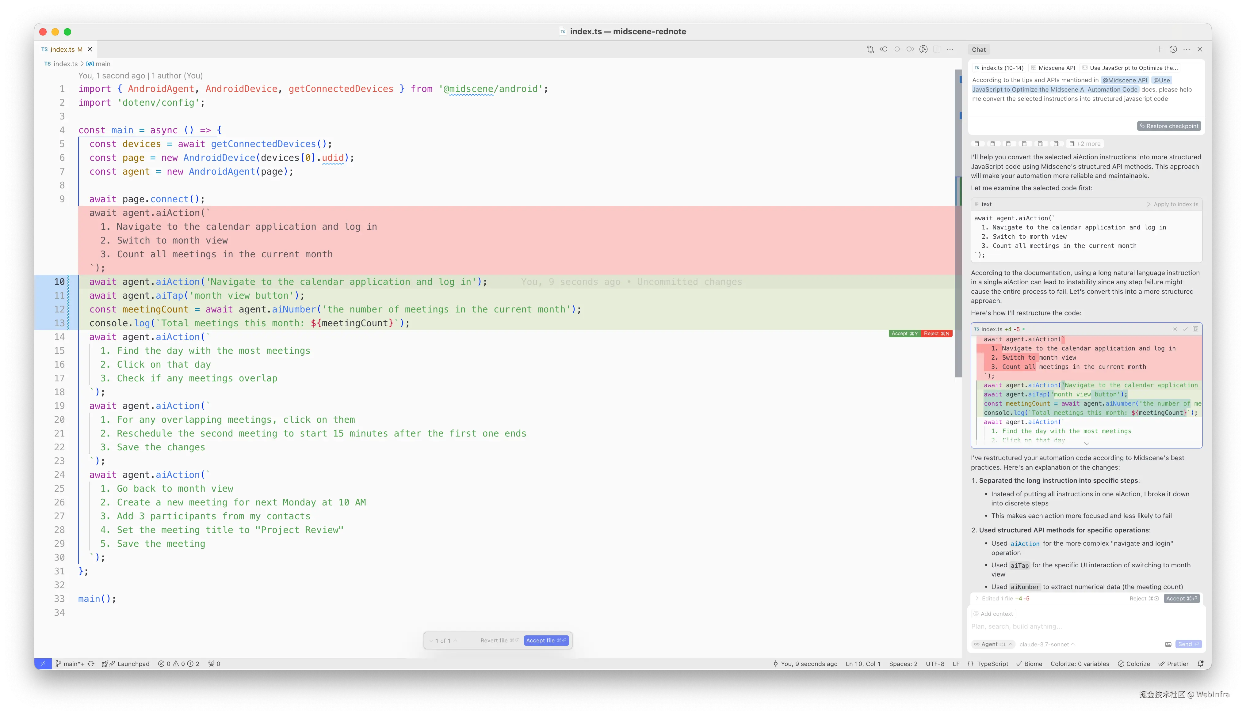 输入你的提示词后,AI IDE 会自动将你的提示词转换为结构化 javascript 代码: