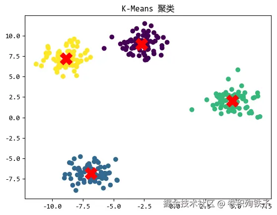 它的目标是将数据划分为kk个簇,每个簇由一个 “中心点” (质心)代表。