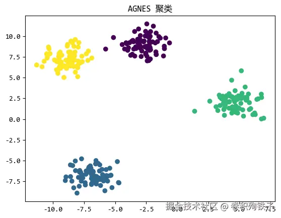 AGNES(Agglomerative Nesting)是一种自底向上的层次聚类算法。