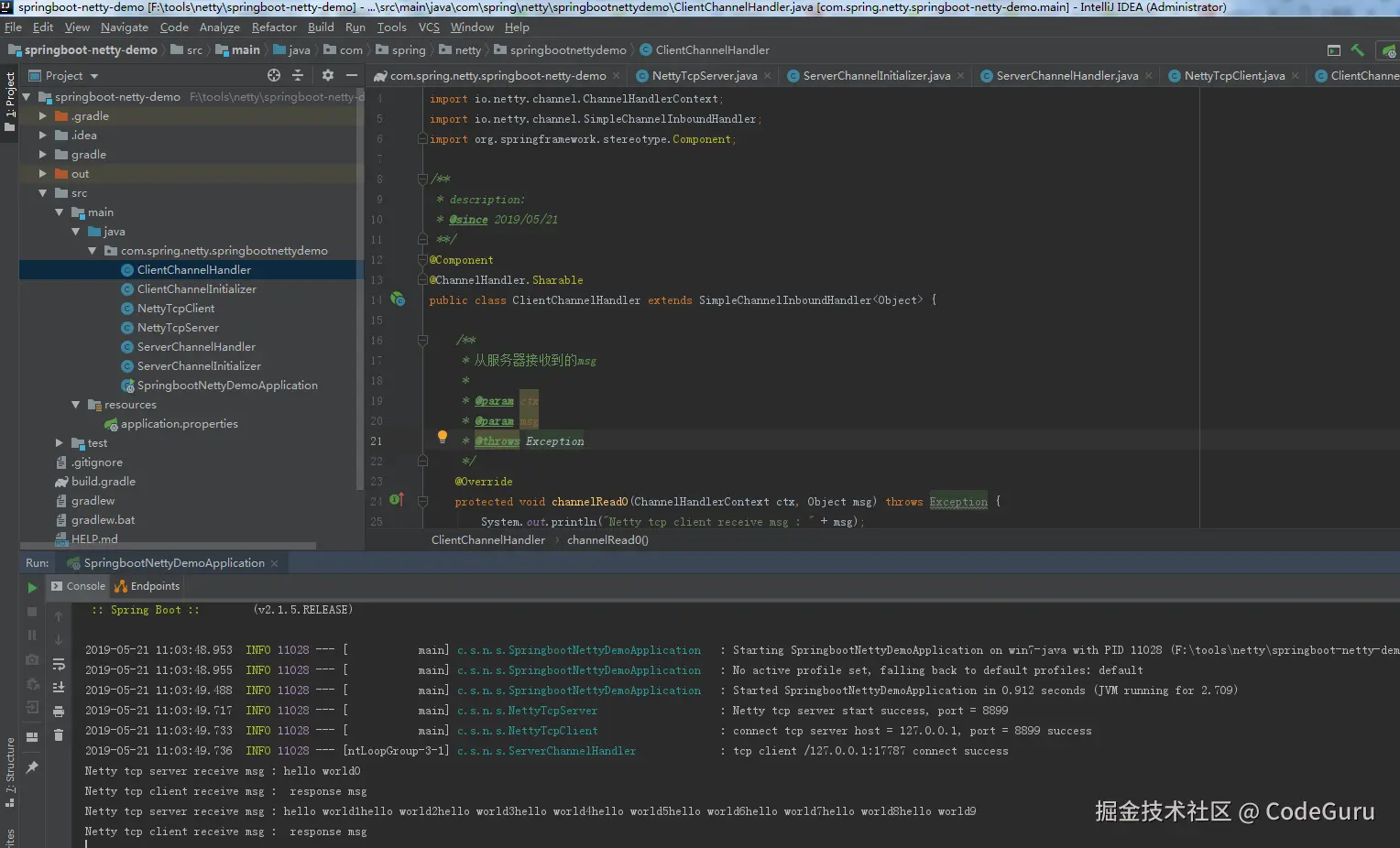 本节通过案例介绍springboot与netty的集成