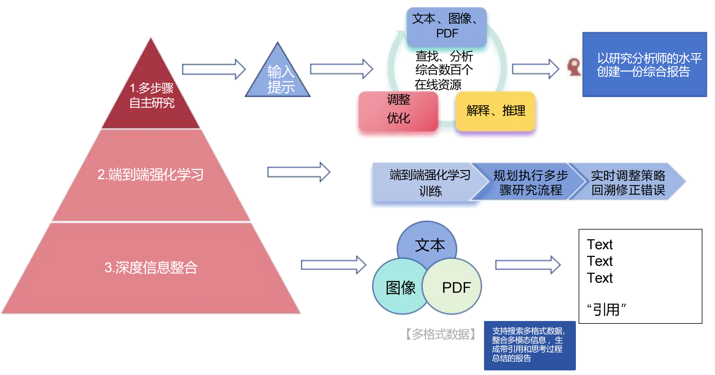 核心功能:多步骤自主研究 、 端到端强化学习 、 深度信息整合