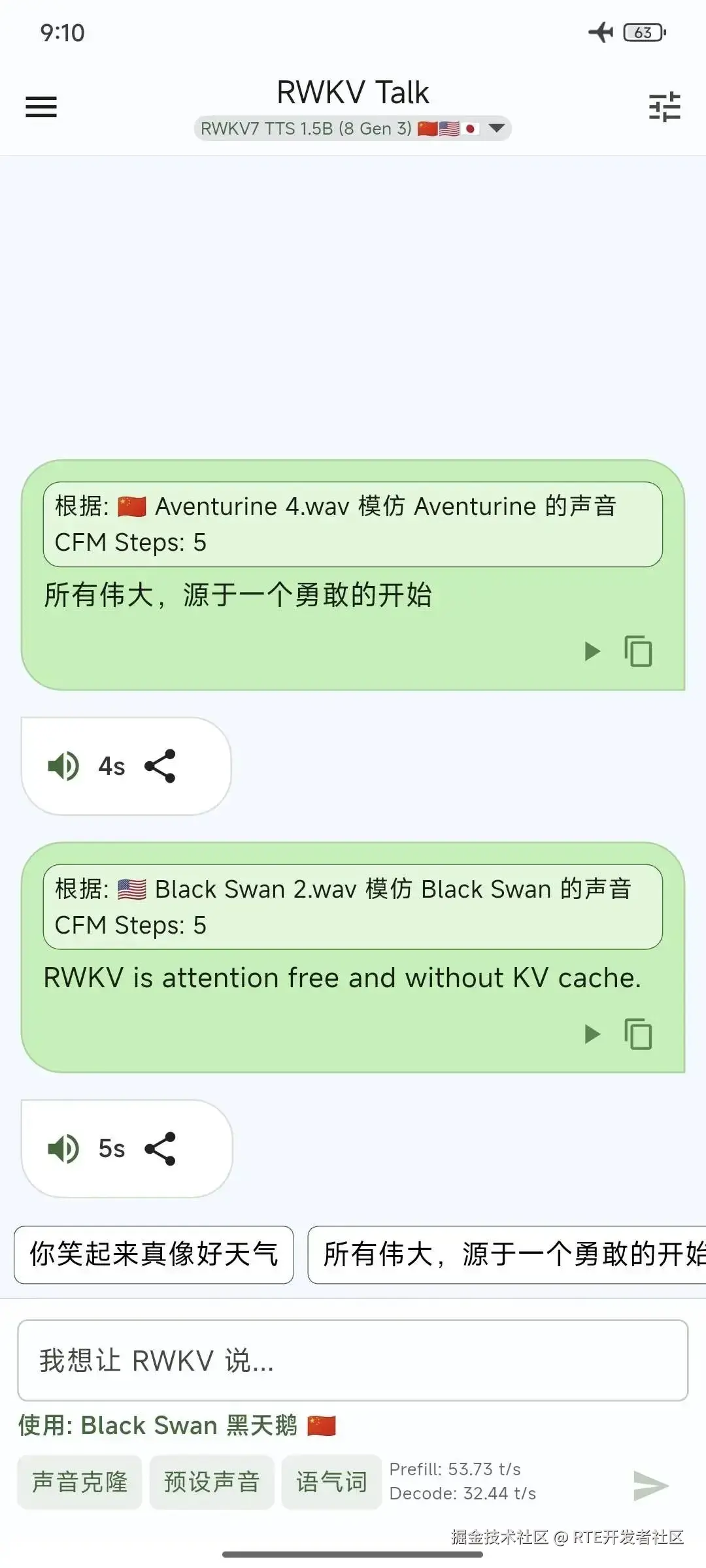 2、RWKV Talk:支持中英日韩四种语言的离线声音合成,内置 20 种可用配音