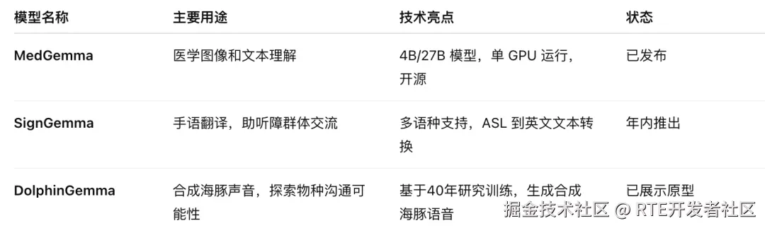 1、Google 发布三款基于 Gemma 的模型变体:MedGemma、SignGemma 和 DolphinGemma,分别面向医疗、手语和动物语言领域
