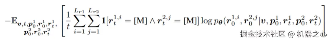 训练目标: LLaDA-V 扩展了 LLaDA 的训练目标,以支持多轮多模态对话。其核心思想是在训练时保持图像特征和用户提示(Prompt),仅对模型的回复(Response)进行随机掩码,训练目标仅对被掩码部分计算交叉熵损失。