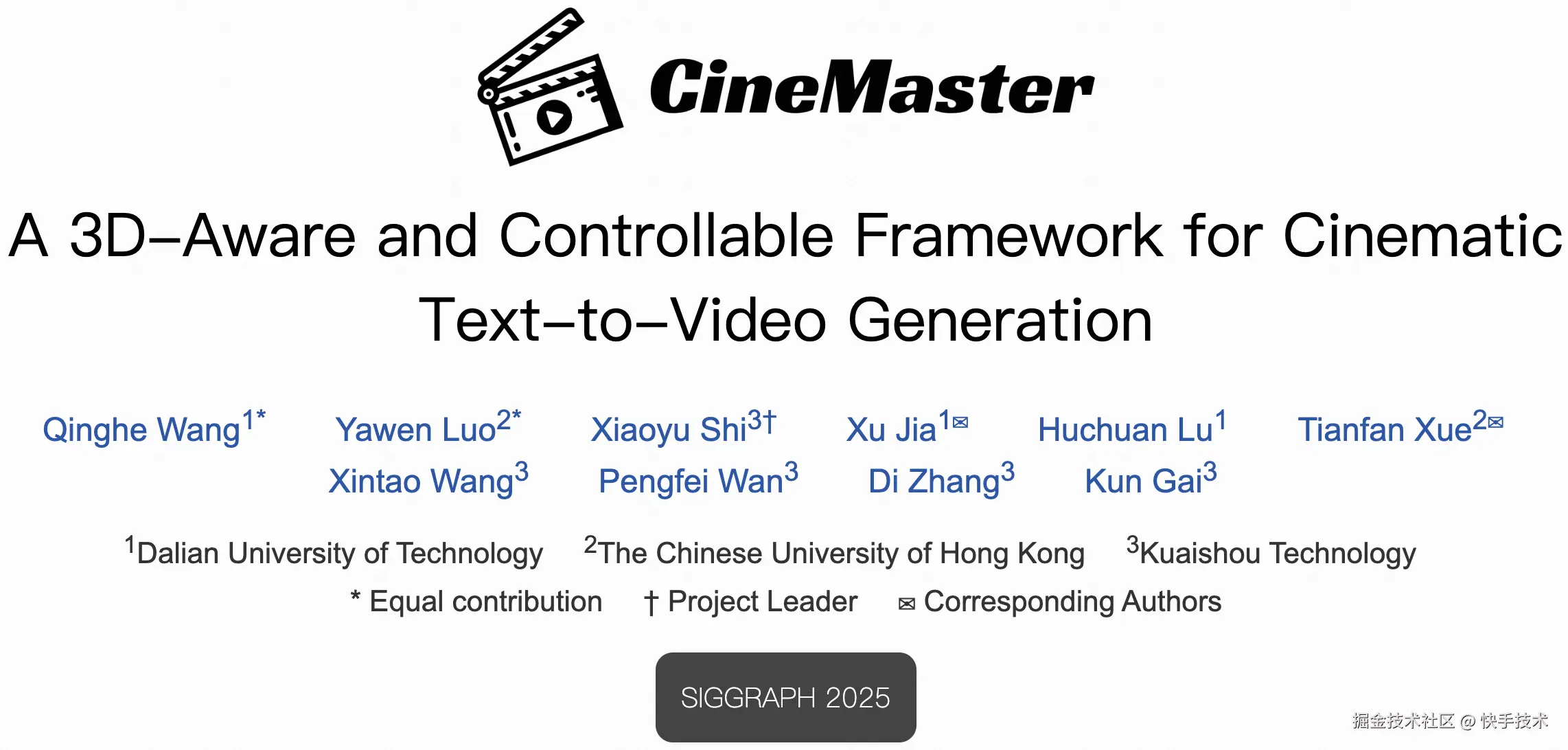 论文标题:CineMaster: A 3D-Aware and Controllable Framework for Cinematic Text-to-Video Generation