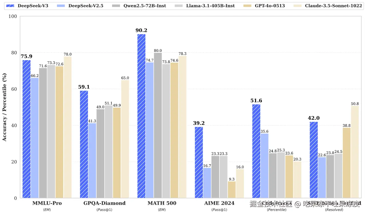 - 通过算法、框架和硬件的协同设计,克服了跨节点 MoE 训练中的通信瓶颈,几乎实现了计算与通信的完全重叠。这显著提高了训练效率并降低了训练成本,使得在不增加额外开销的情况下进一步扩大模型规模。