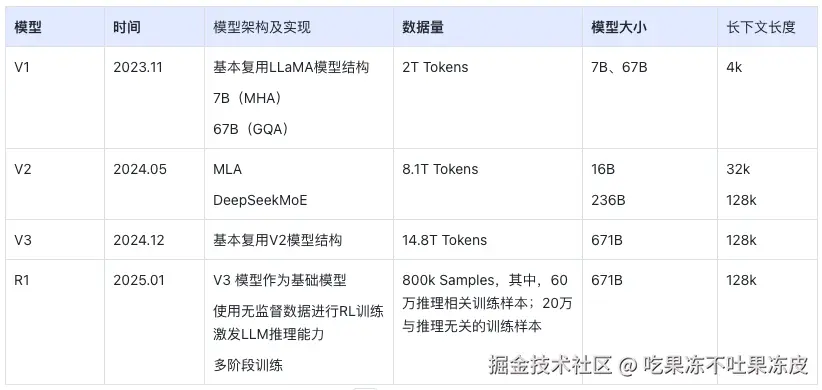DeepSeek 从诞生至今,已经陆续发布了V1、V2、V3、R1等模型。