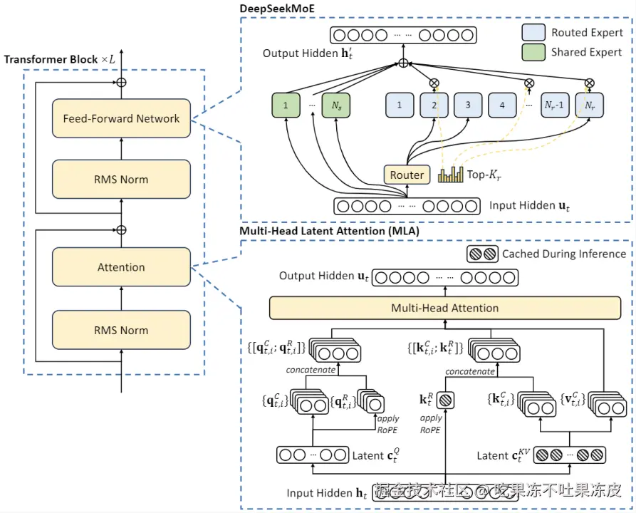 DeepSeek-V2 主要创新点为MLA与DeepseekMOE。