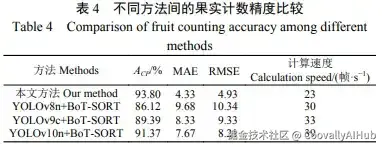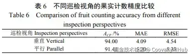 最后还对不同方法成熟度果实进行比较和分析,以及不同巡检视角下的计数精度分析。