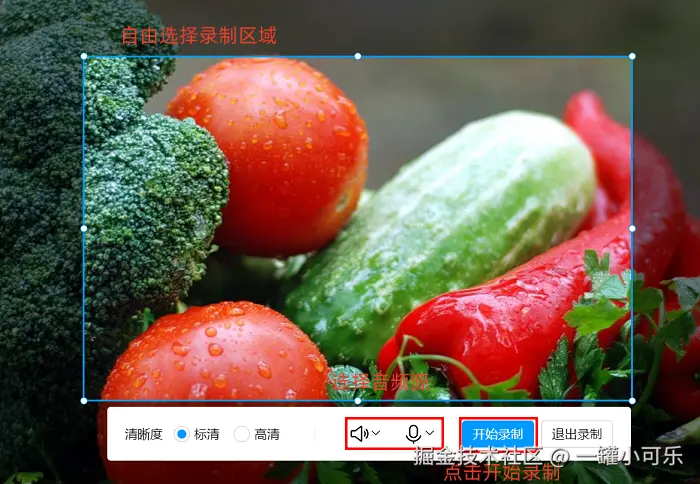 步骤2:选择是录制麦克风声音还是扬声器声音后,点击 “开始录制” 就可以了。