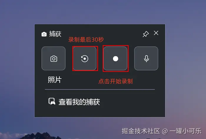 步骤1:在需要的录制页面上,按下 “Win+G” 打开工具栏,然后点击 “捕获” 按钮。