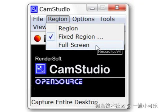 CamStudio适合预算有限或追求轻量化的用户,它支持全屏或自定义区域录制,还可调整画质。
