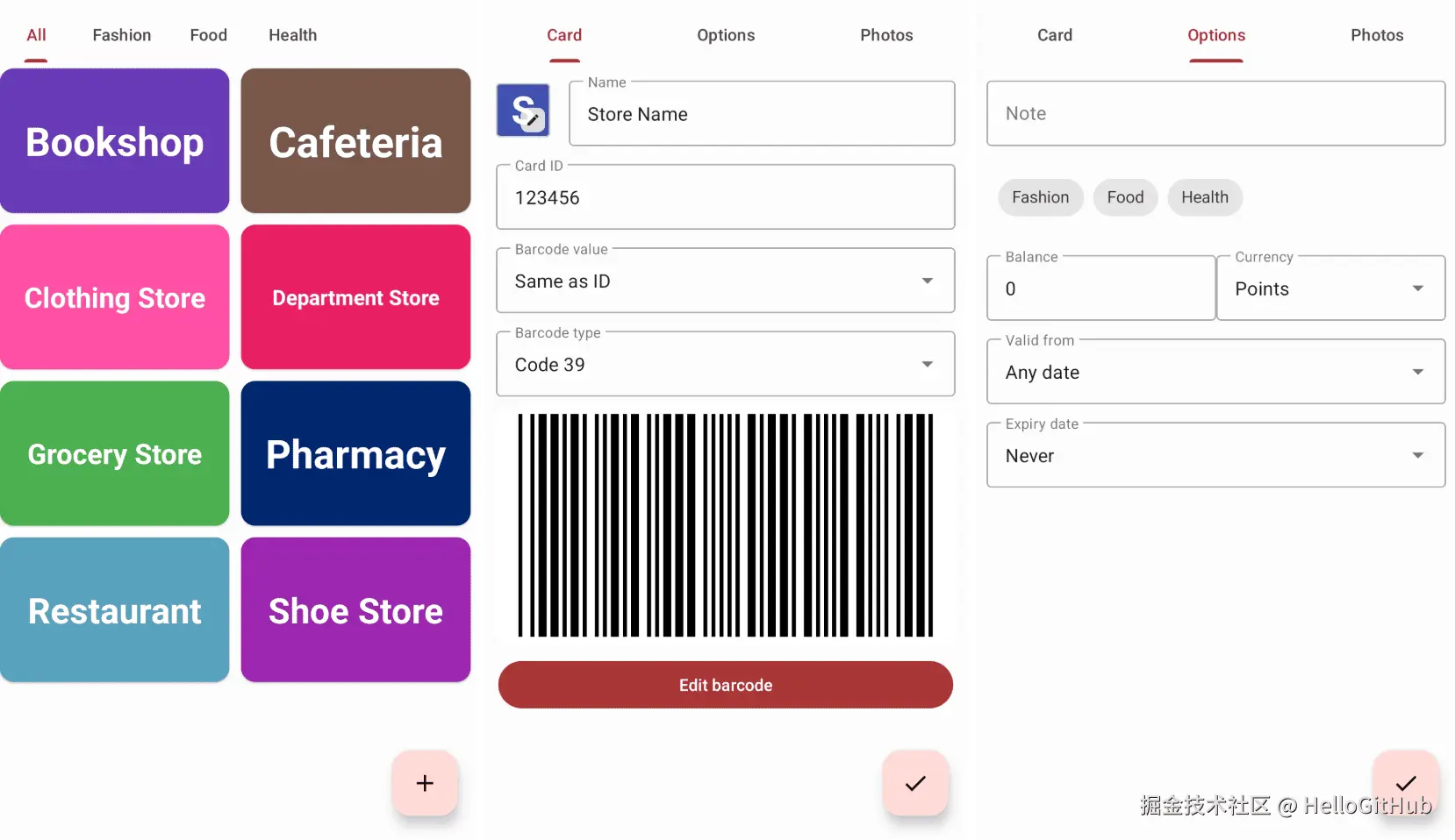 13、Android:Android 的卡券随身管家。这是一款开源免费的 Android 应用,专为管理和存储会员卡、优惠劵和票据信息而设计。它内置条形码扫描器,支持将各种实体卡片的条形码或二维码数字化,保存在手机中,从而无需携带实体卡片。来自 @ewiro 的分享