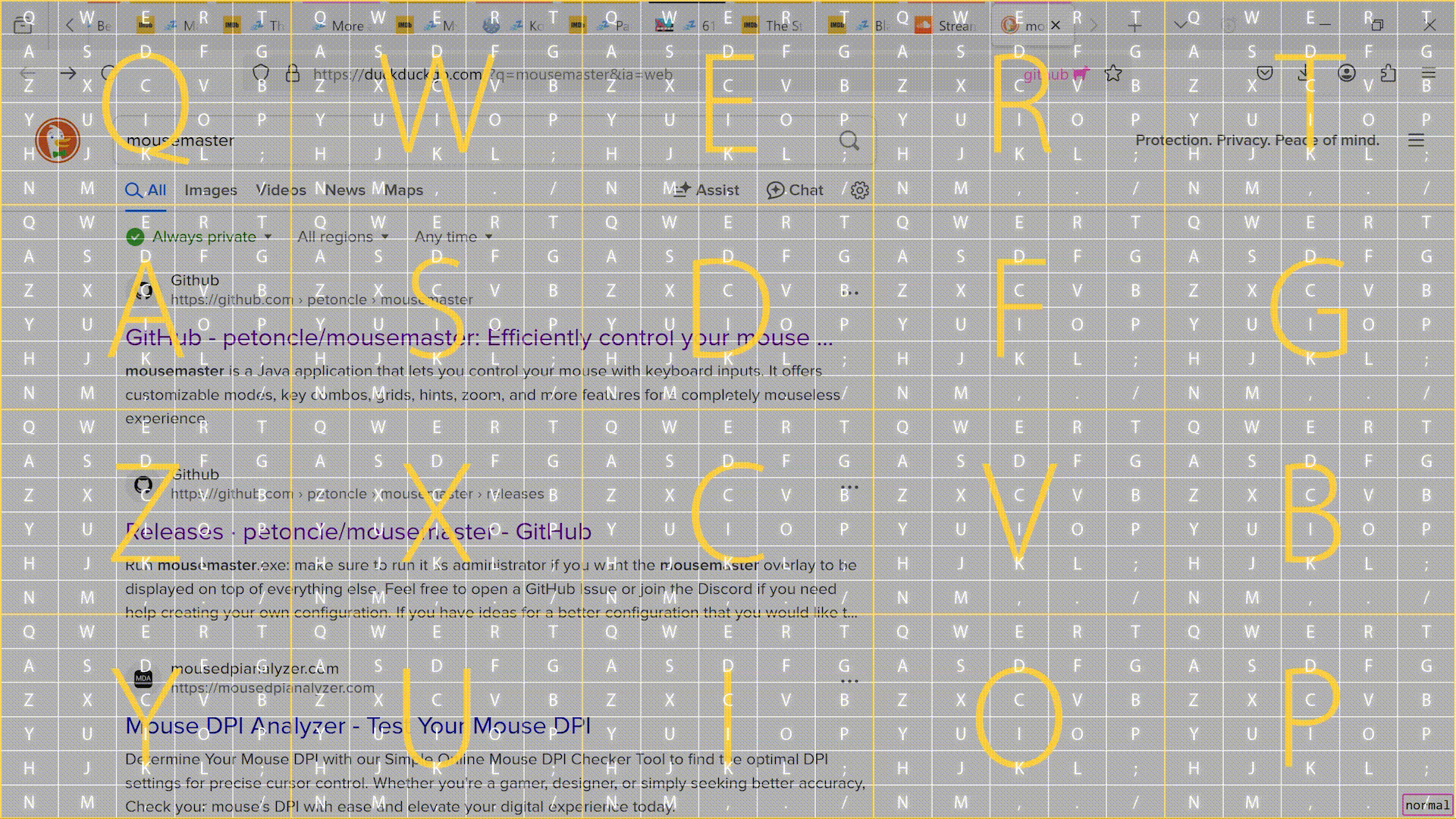 14、mousemaster:键盘控制鼠标的工具。这是一个 Java 编写的键盘控制鼠标工具,支持多种导航模式和多屏环境,让用户能够完全用键盘控制鼠标,实现无鼠标的高效操作。