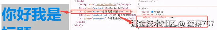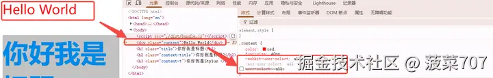 .content{ color: red; font-size: 40px; user-select:all; // 选择的选择全部内容 }- 但是实现这些功能,我们需要借助于PostCSS对应的插件
