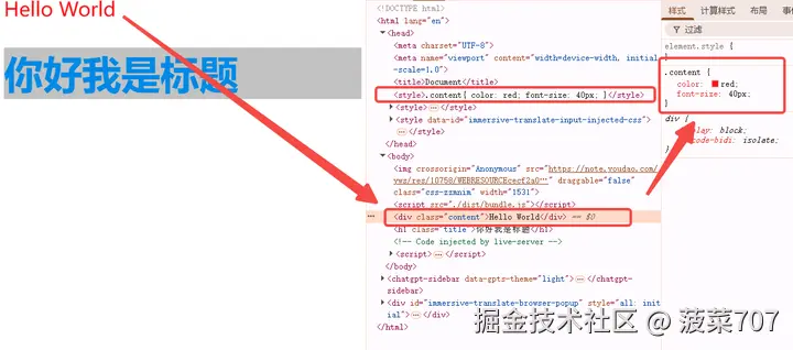 当前目前我们的css是通过页内样式的方式添加进来的;