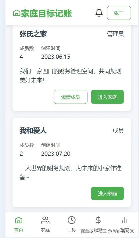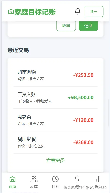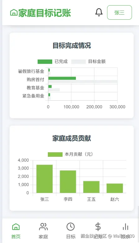 小程序,支持以家庭为单位,进行目标设立和记账的功能