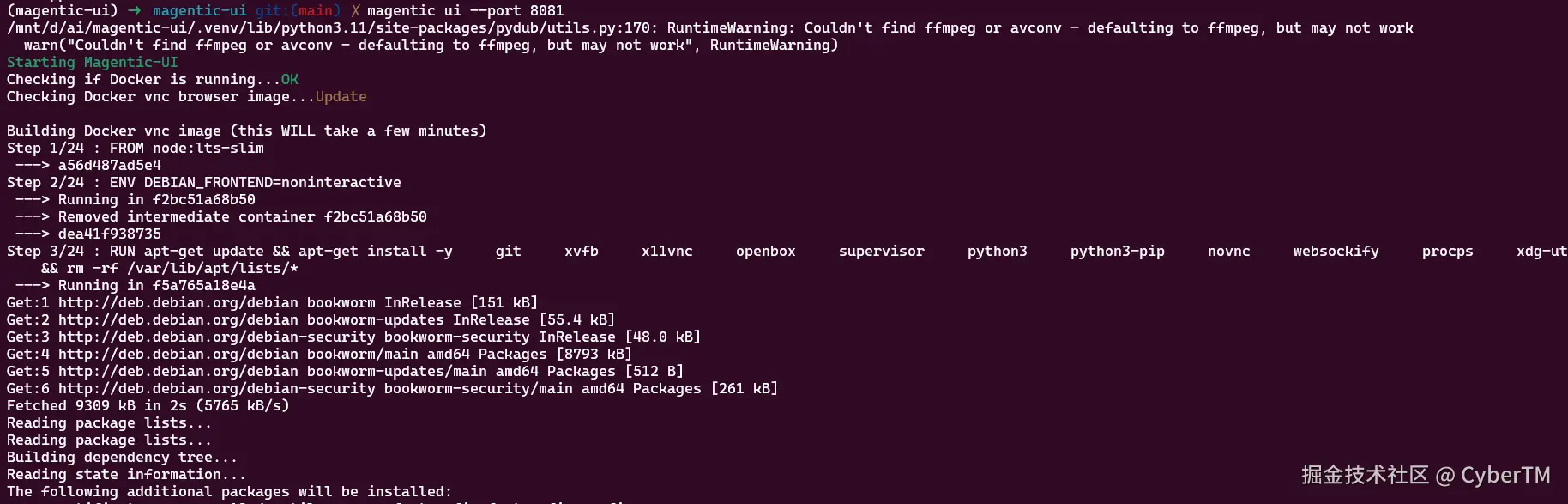 首次启动会自动下载和构建Docker镜像: