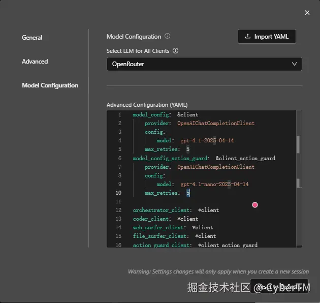 - 点击"IMPORT YAML"上传配置文件